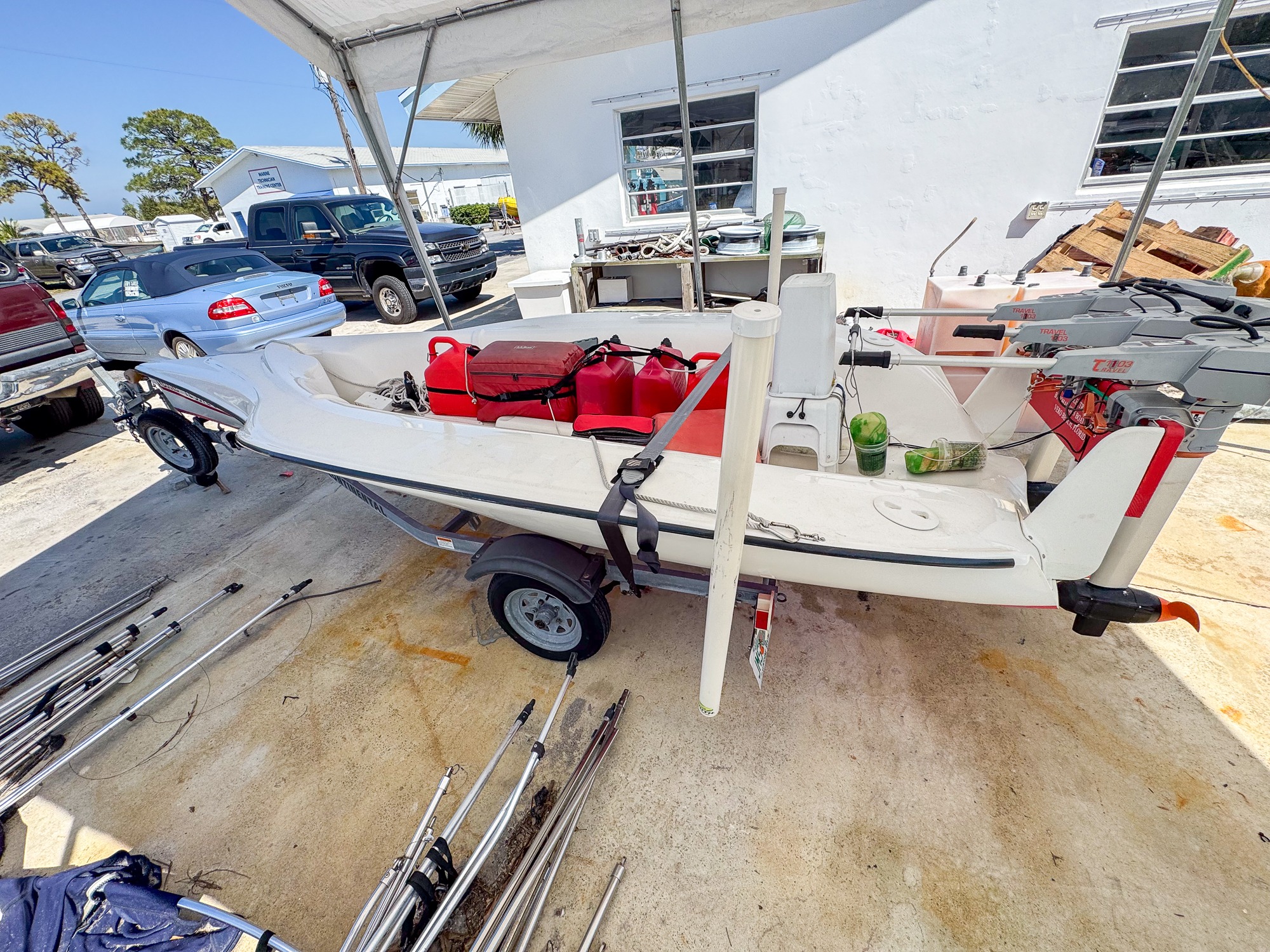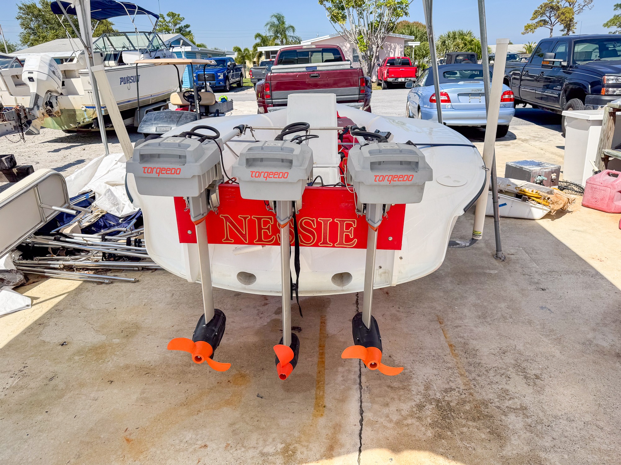 This mostly silent runabout features three Torqeedo electric motors and a 2019 single-axle Continental trailer.