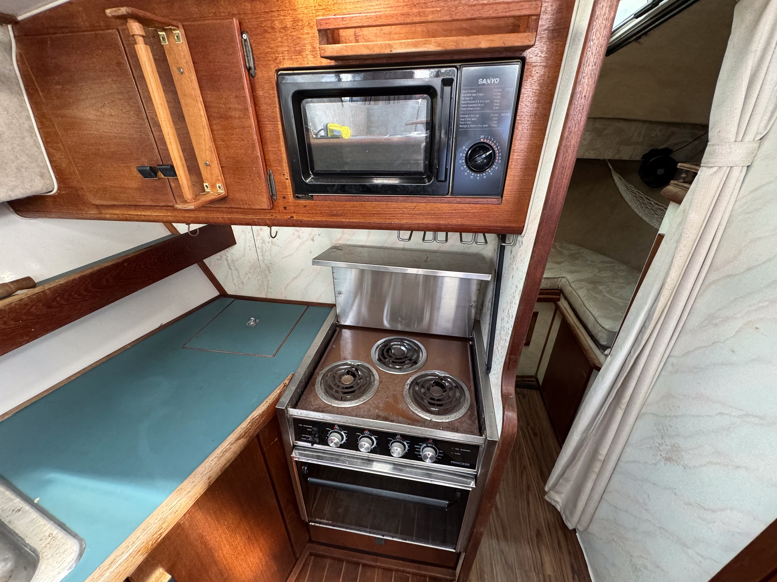 Under there is a sleeping area along with a V-berth up front.
